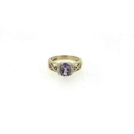 • 9ct Yellow Gold, Diamond & Amethyst Ring