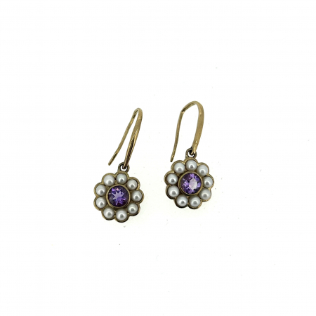 • 9ct Amethyst and Pearl Earrings.