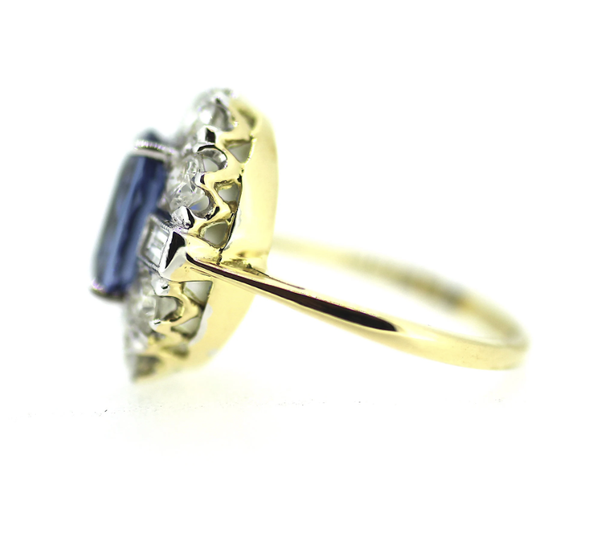 A stunning princess Diana inspired 18ct yellow gold, diamond and sapphire art deco ring.
