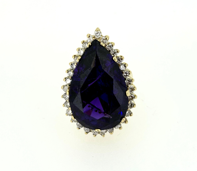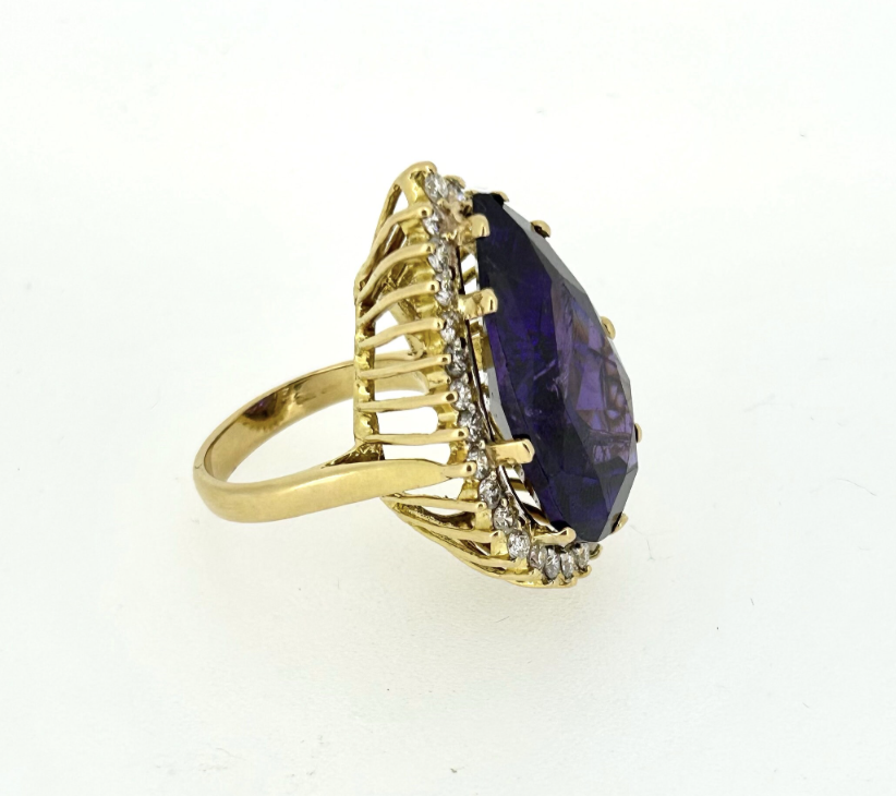 A magnificent 18ct Gold ring with 22.51ct Amethyst and 1.51ct of Diamond.