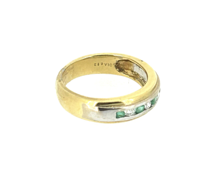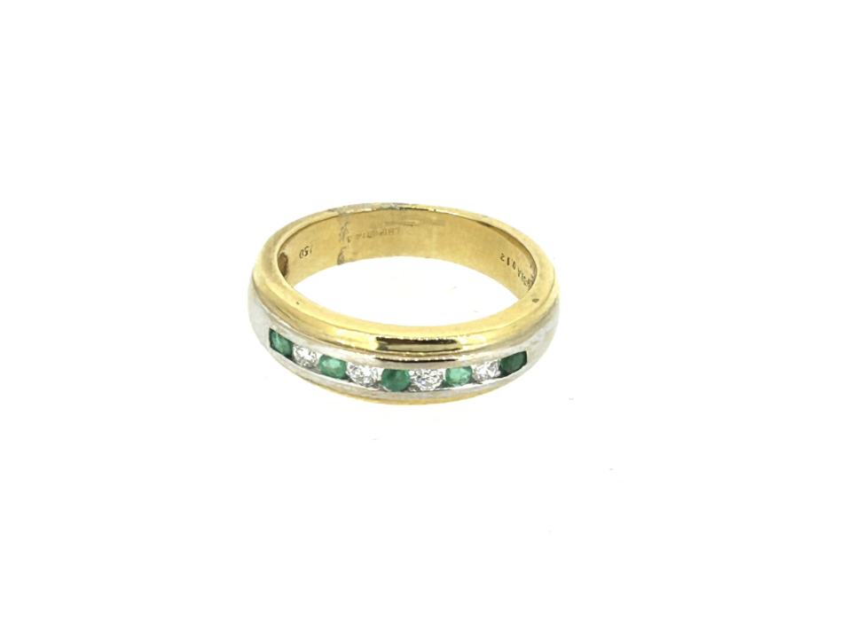 The ring has a total of 5 Emeralds and 4 Diamonds.