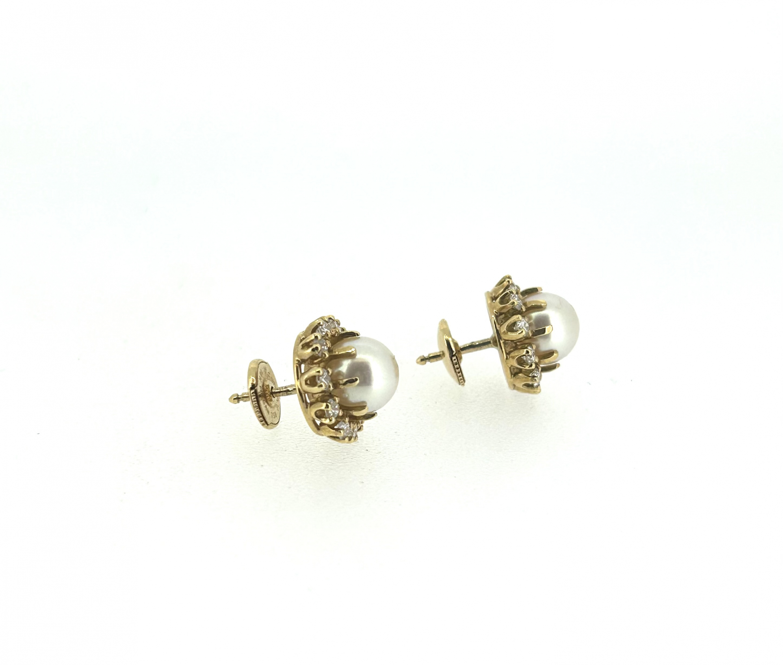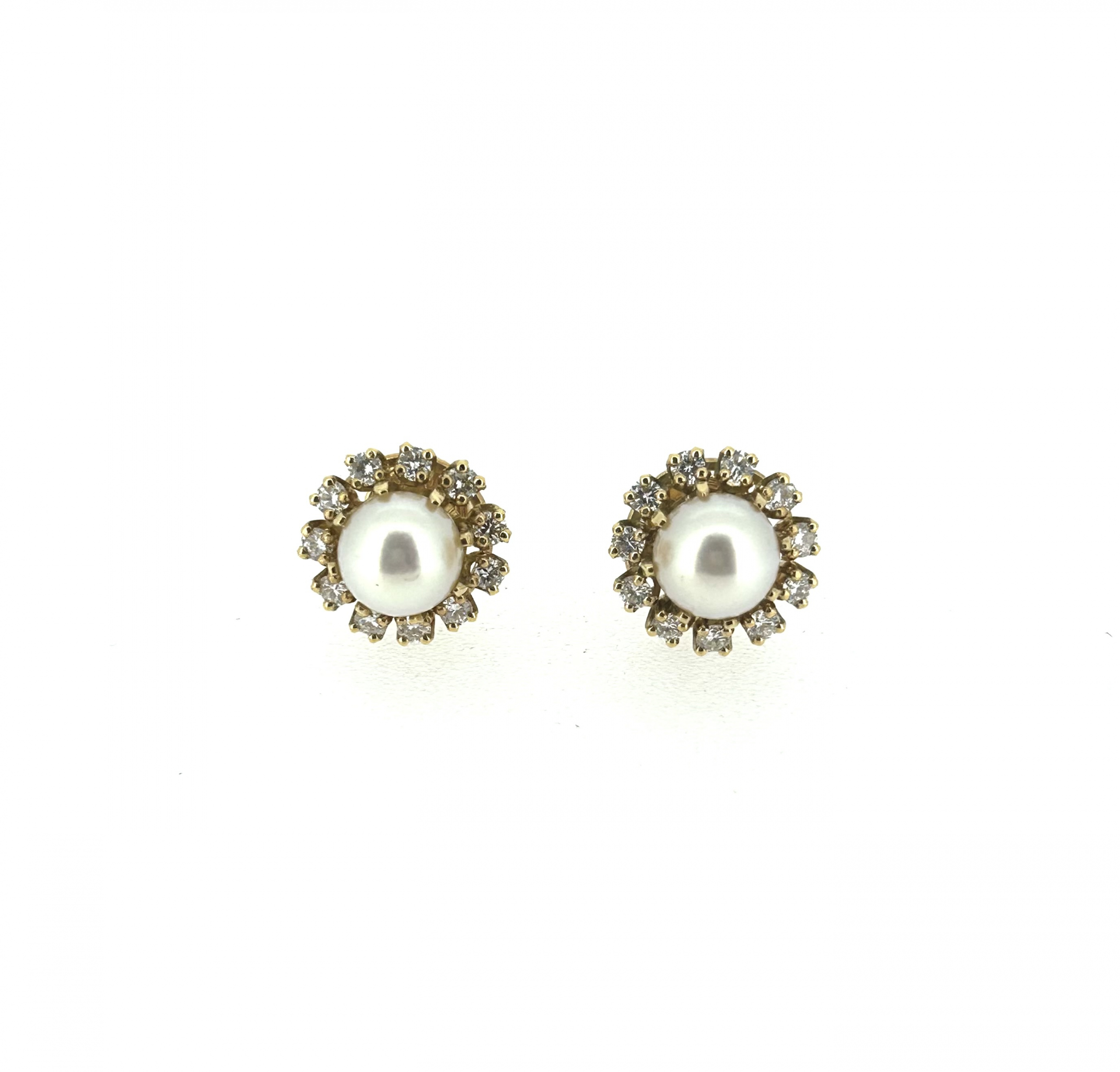 A gorgeous pair of 18ct yellow Gold, Pearl and 0.66ct Diamond stud earrings with lock on backs.