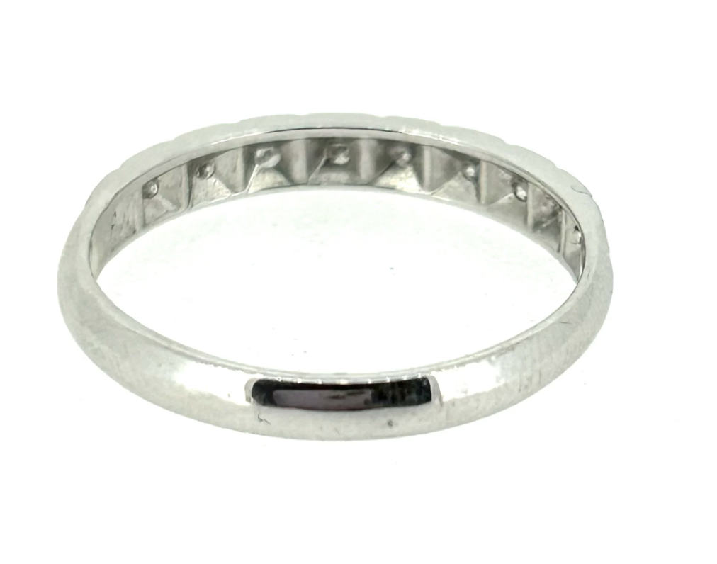 This piece has Diamonds going around half the ring and patterns surrounding them.