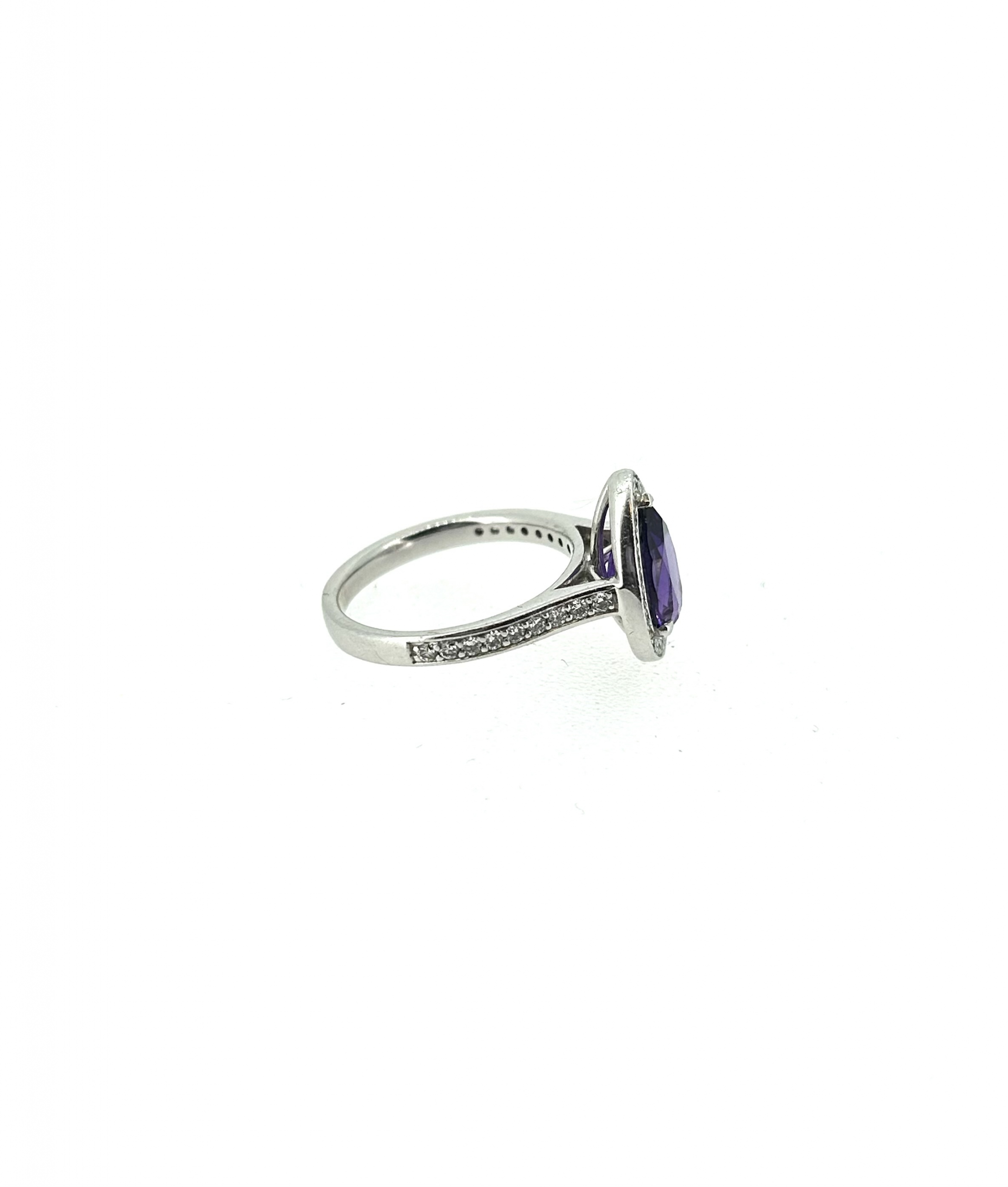 A beautiful 9ct White Gold, 1.74ct Amethyst and 0.45ct Diamond Ring.