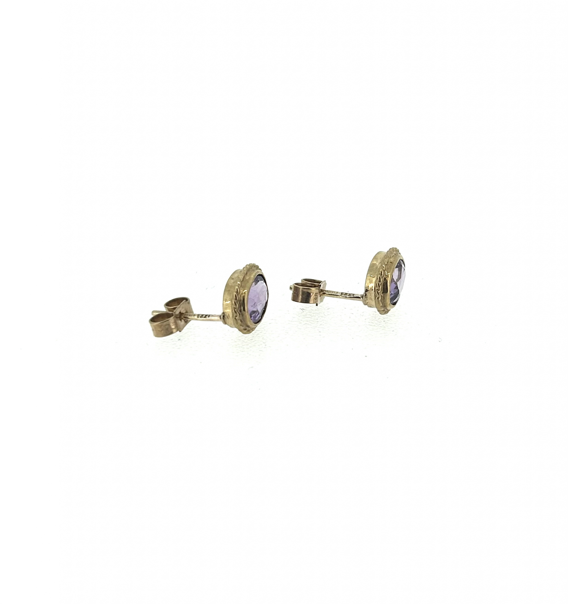 A lovely pair of 9ct Yellow Gold and Amethyst drop earrings with butterfly backs.