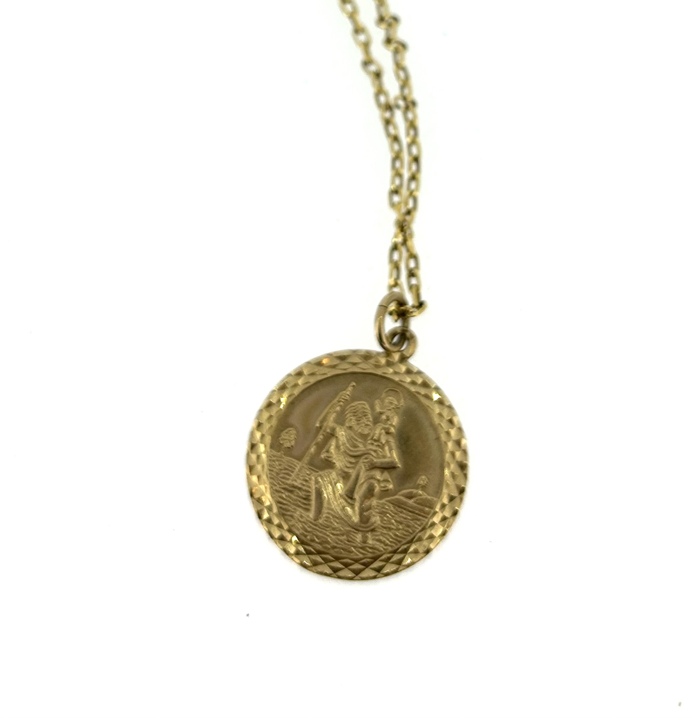 A simple 9ct yellow gold st Christopher necklace with a paper link chain and spring ring clasp.