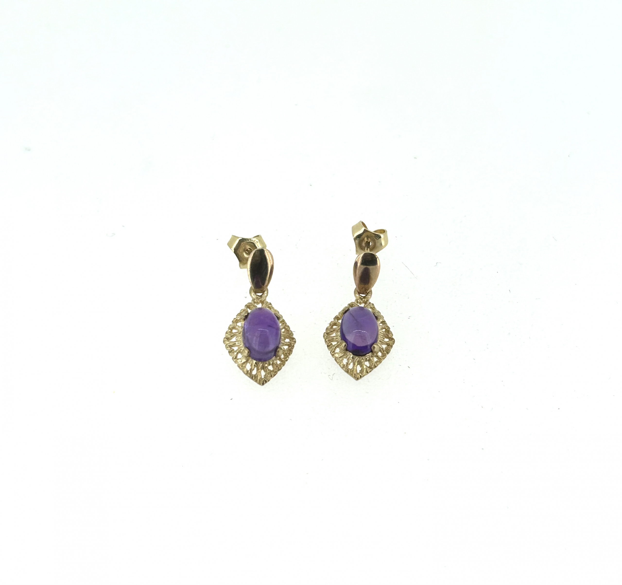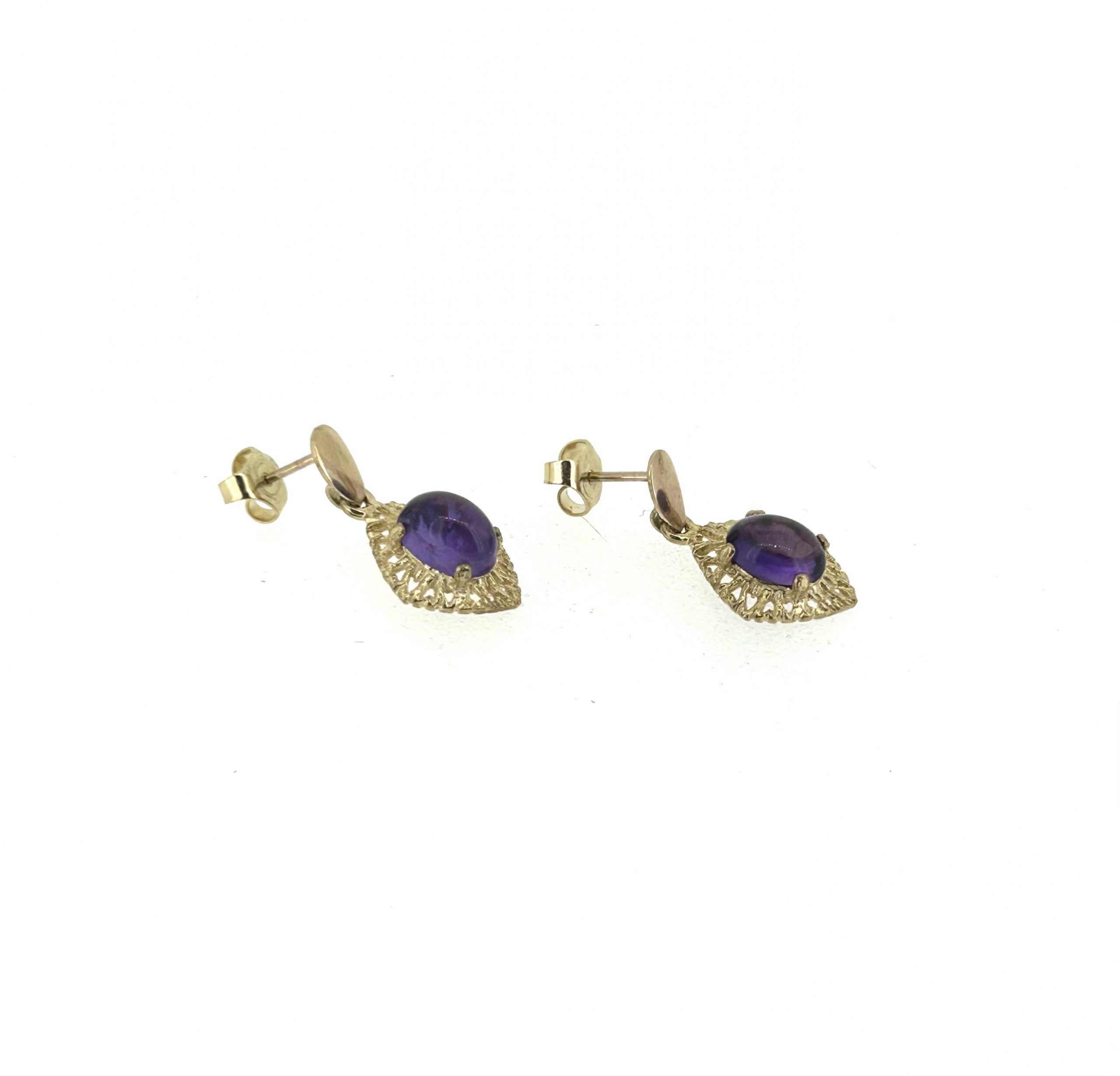 A stunning pair of 9ct Yellow Gold and Amethyst drop earrings with butterfly backs.