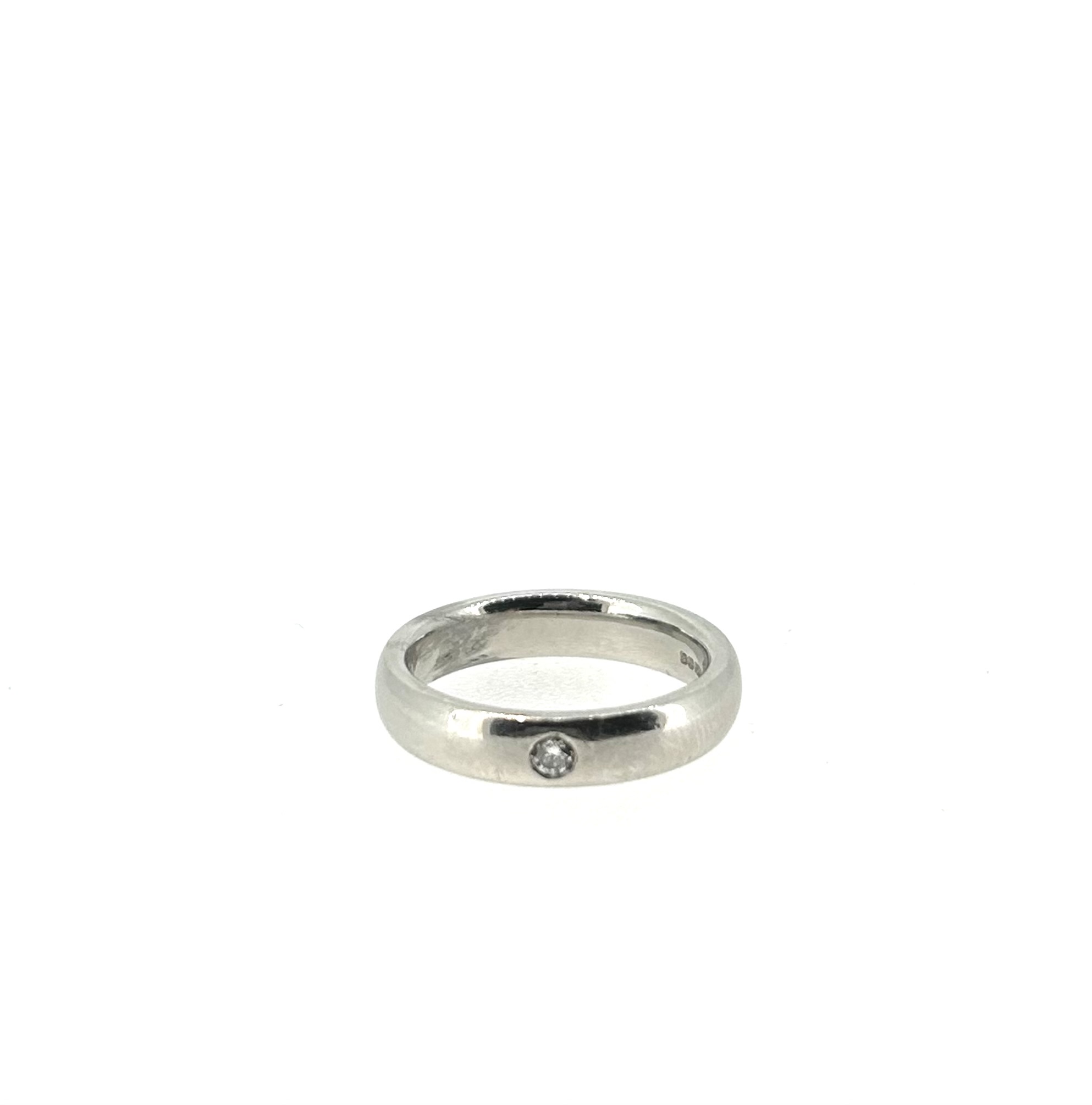 This piece has a singular, small round diamond in the centre.