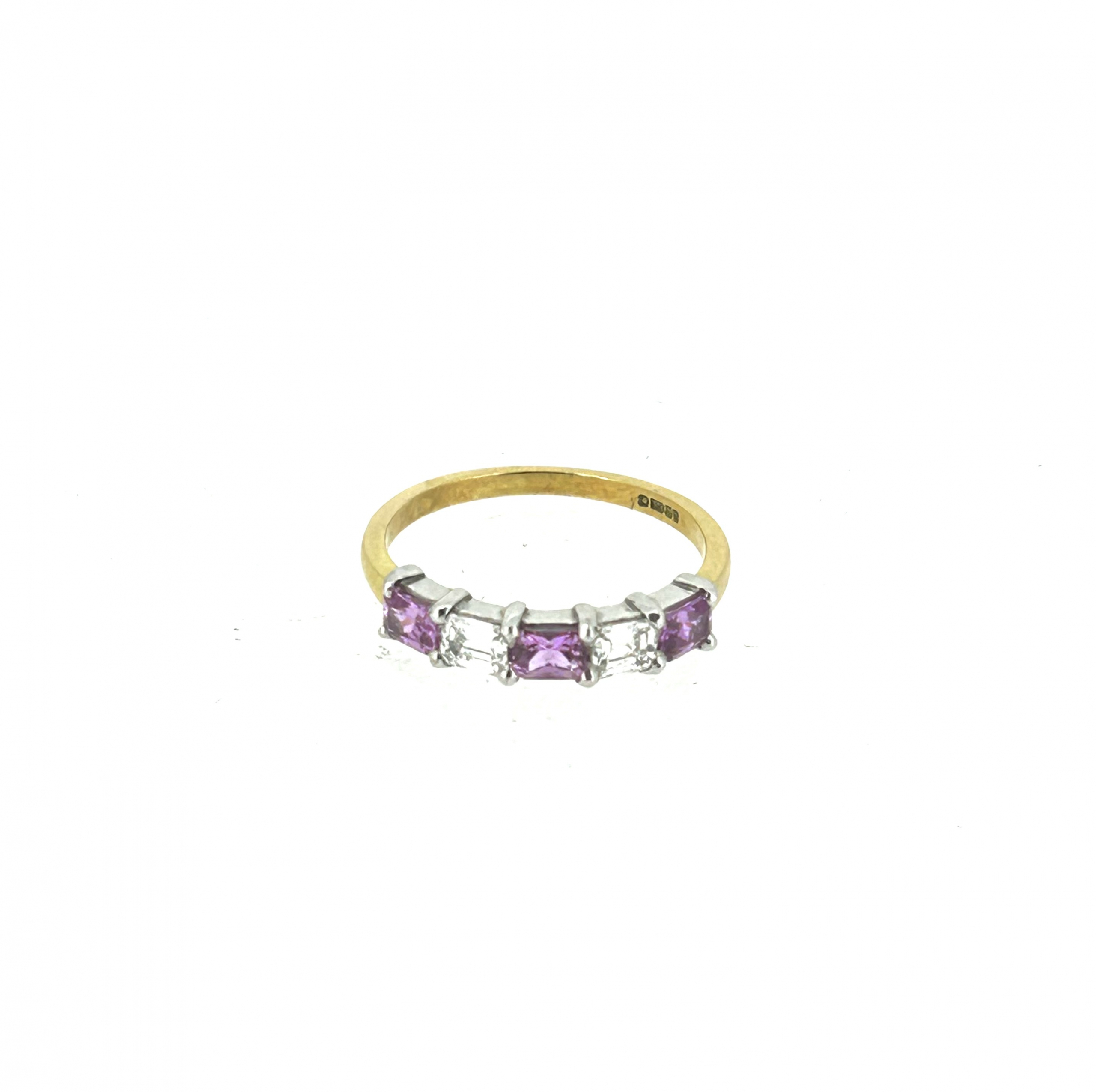 A simple, gorgeous 18ct yellow Gold, Pink Sapphire and Diamond vintage ring.